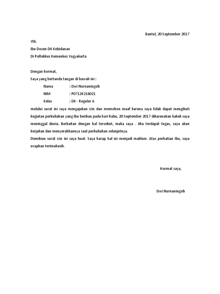 Surat Izin Tidak Masuk Kuliah Karena Nenek Meninggal Pdf